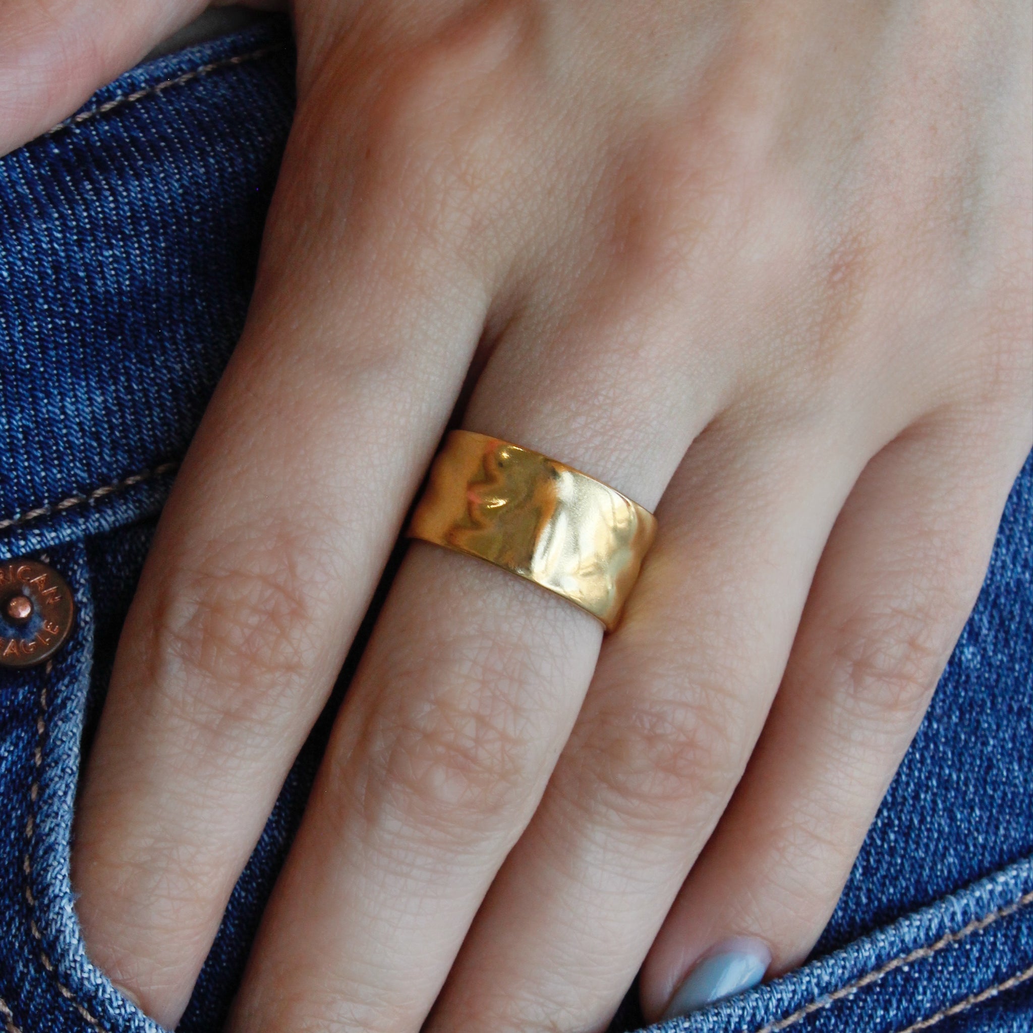Anillo ajustable (mínimo talla #7) chunky con textura martillado.