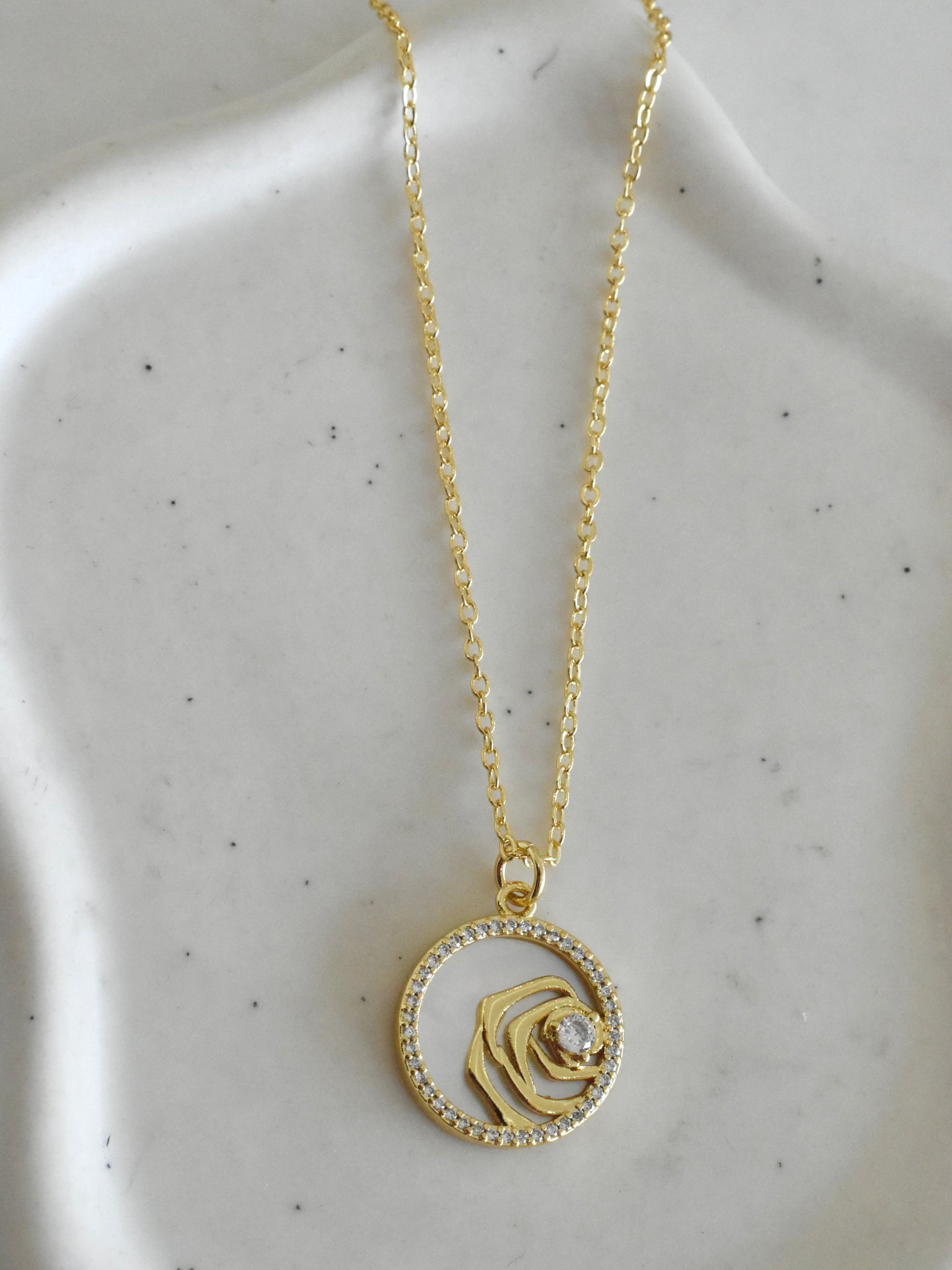 Gargantilla círculo rosa fondo de madre perla y contorno de circonias