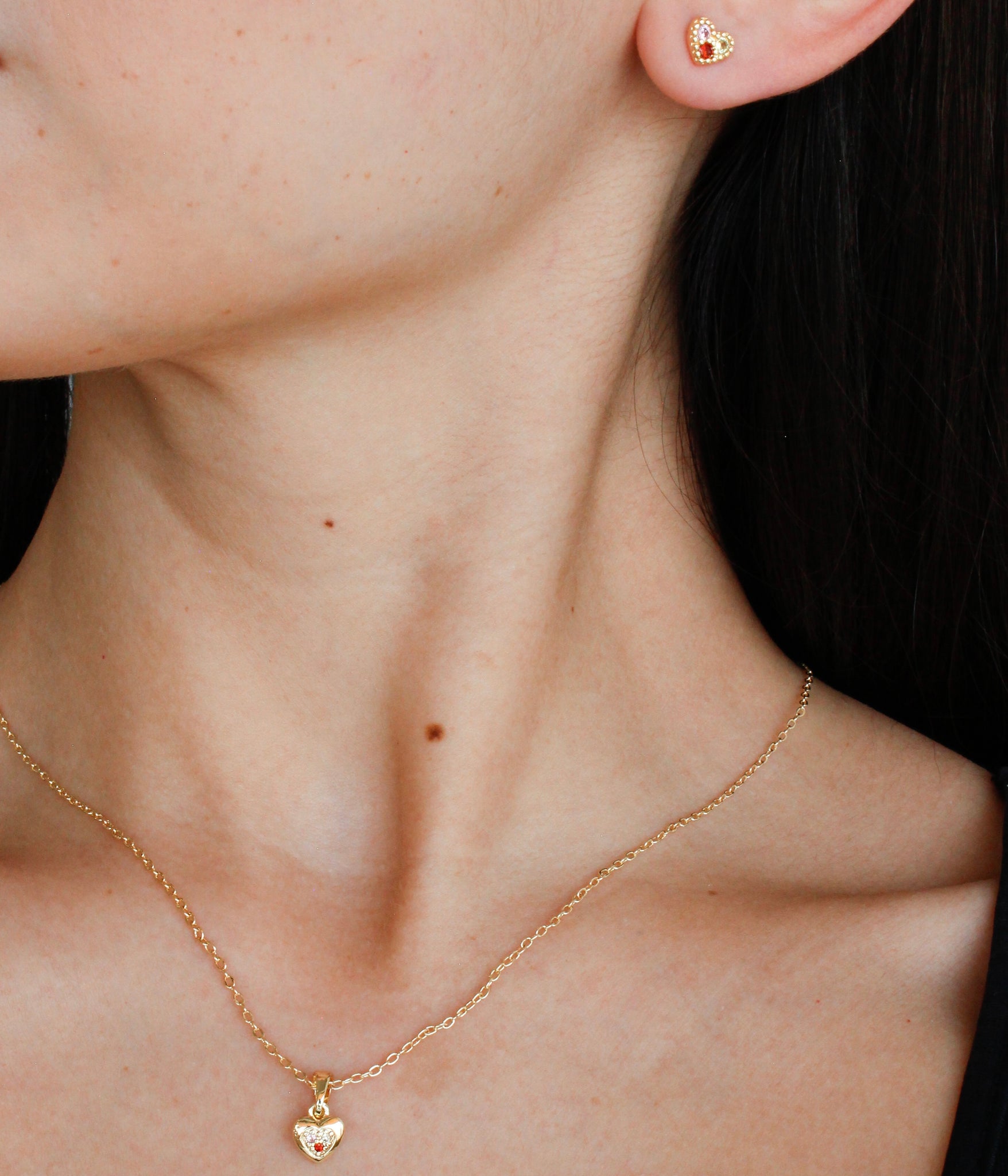 Juego gargantilla y aretes mini corazón circonias