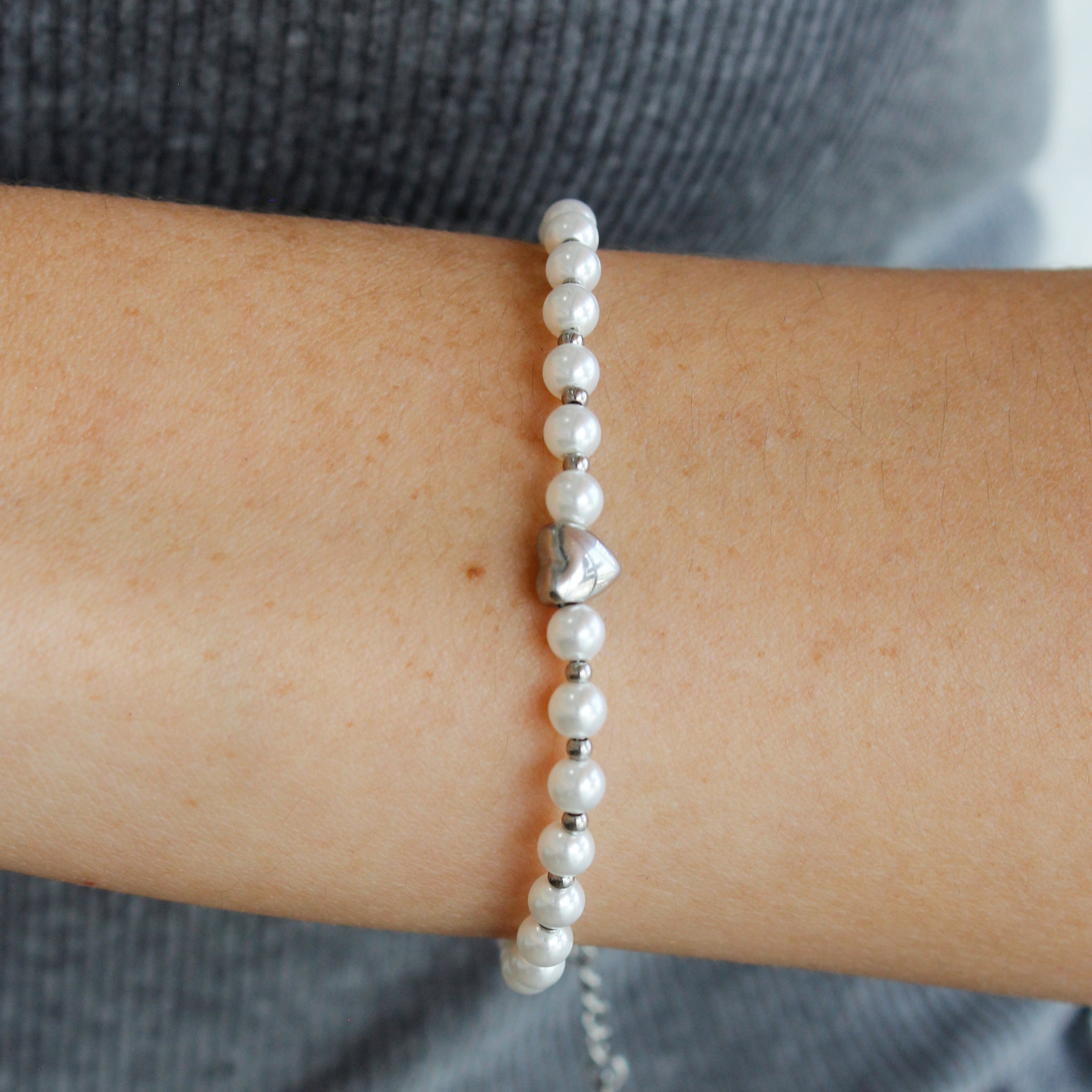 Pulsera mini corazón perlitas
