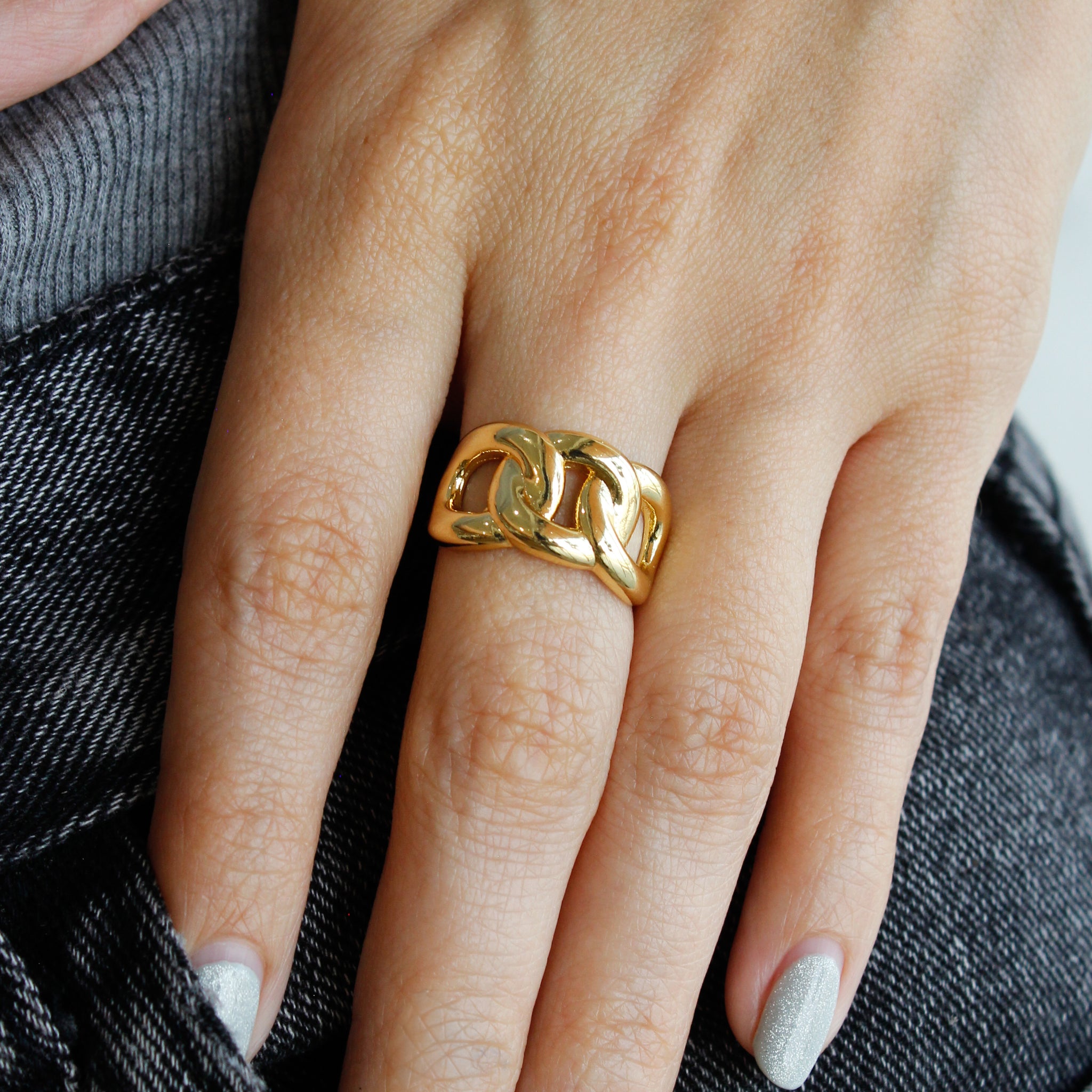 Anillo ajustable cadena 3 eslabones dorados - disponible en dorado y plateado