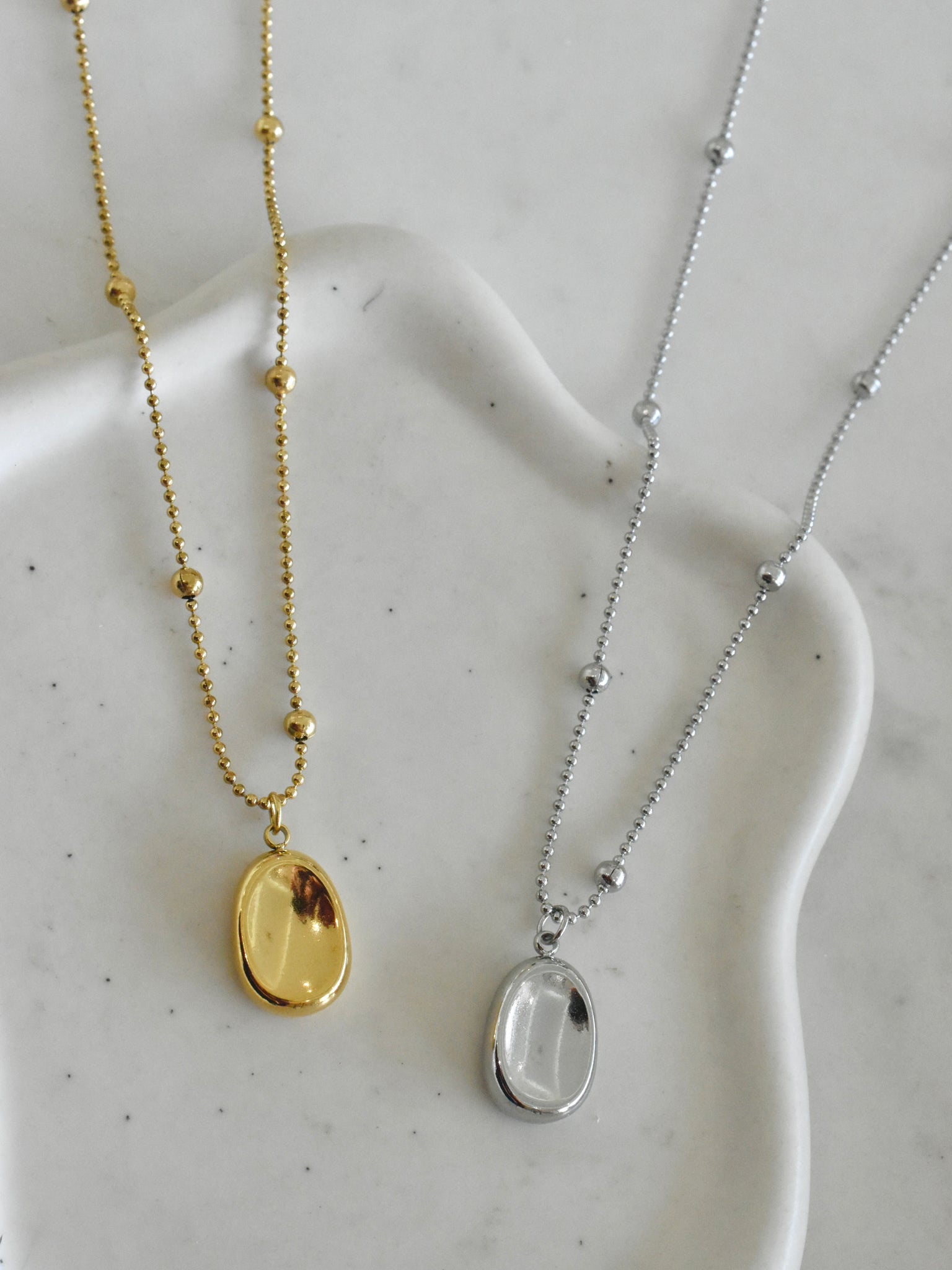 Gargantilla óvalo aplastado - disponible en dorado y plateado.